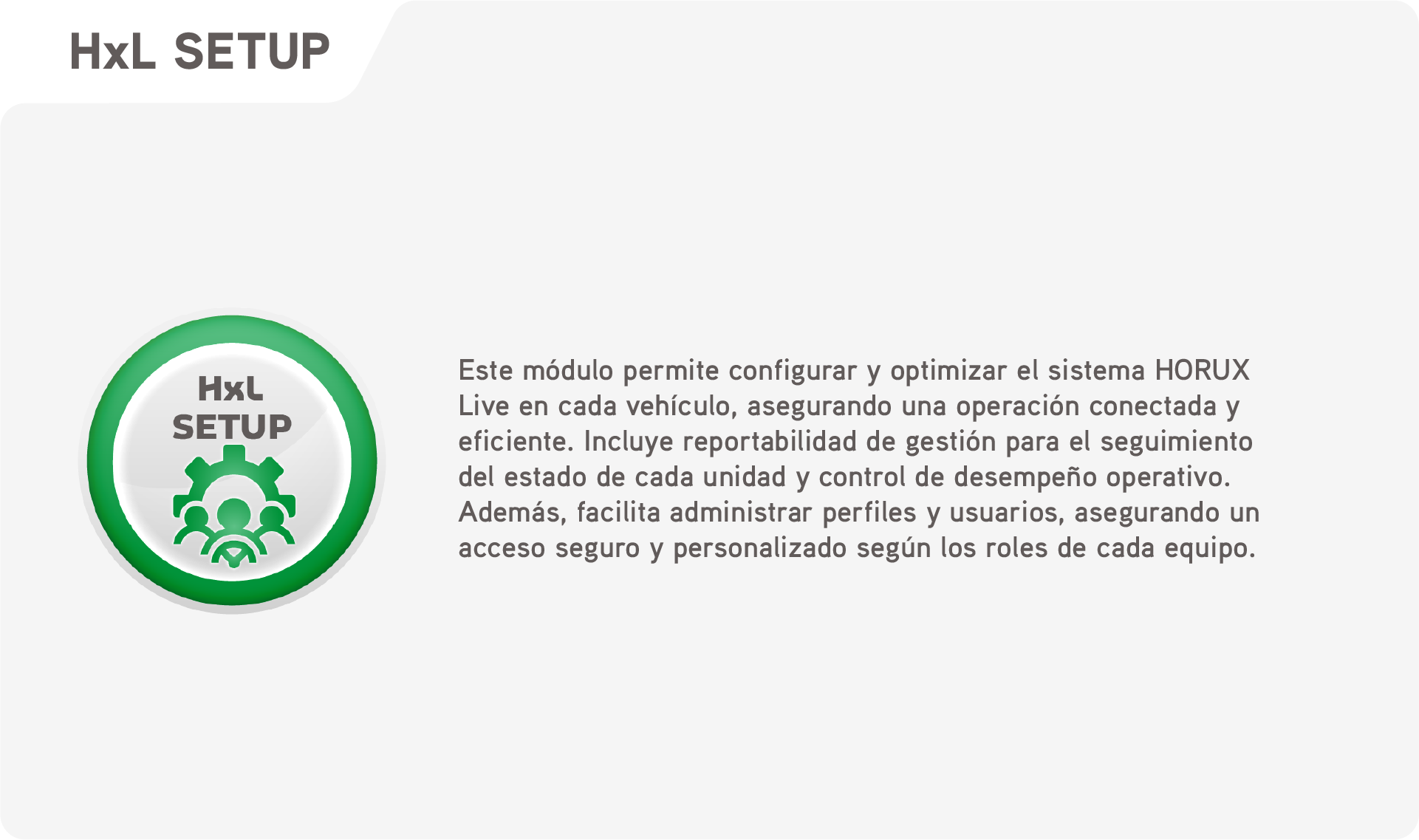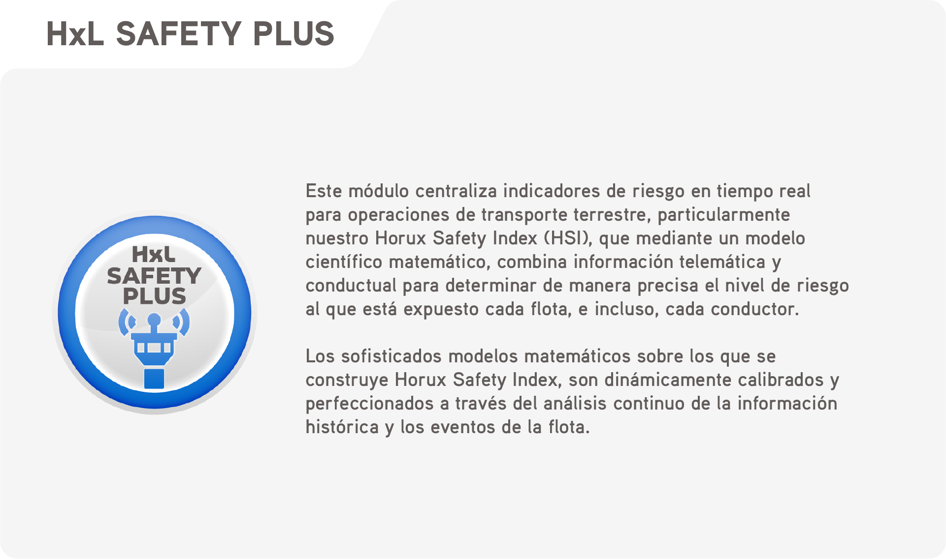 HORUX Live es una plataforma de desarrollo propio que integra tecnologías avanzadas en un sistema único para ayudar a una conducción más segura y productiva, integrando diversas tecnologías que permiten gestionar de manera eficiente los riesgos asociados a cada conductor, flota y transportista.